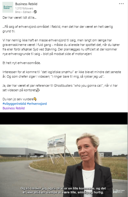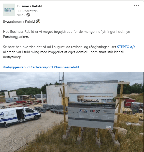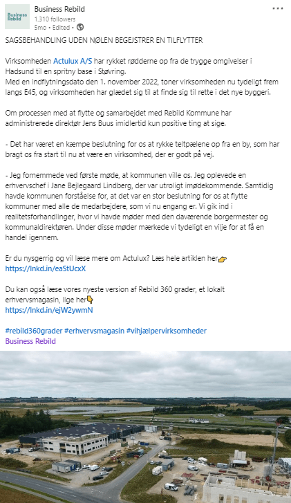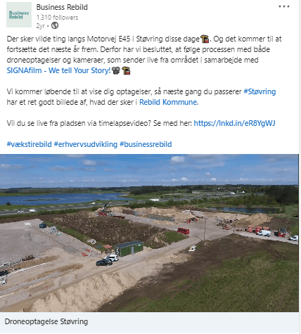 Ved at anvende SIGNAs dronefilm kombineret med timelapse film kunne Business Rebild jævnligt lave spændende og engagerende opslag