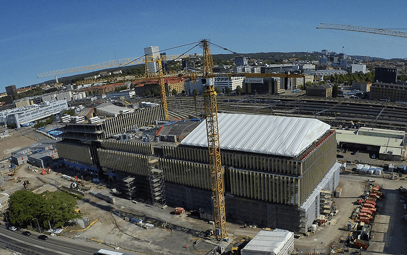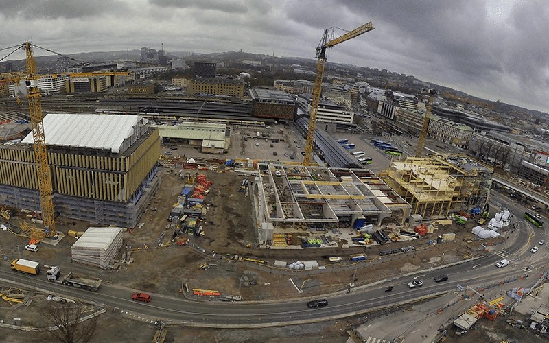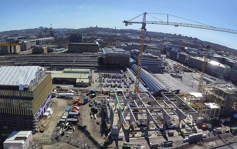 Visuel dokumentation gør det muligt at følge transformationen af området – fra byggeplads til nyt, levende knudepunkt i Göteborg.